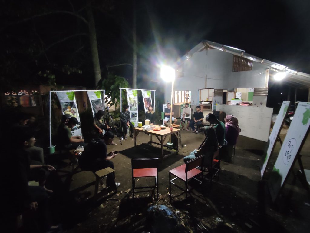 Obrolan malam ini bertajuk “Sut Usut Tuntas Praktik Semesta Guild x FSRT05”, ini merupakan rangkaian dari kegiatan pameran arsip Gerilayar- Sinema Memang Unik. Kegiatan dimulai oleh Spansan setelah Tukiang datang. Tukiang bisa dikatakan seniman residensi yang sudah cukup lama menetap dan sering bolak balik ke kampung ini karna kampungnya sejam paling lama kesini dengan motor. Tukiang sudah seperti menjadi warga disini saja. Spansan memulai obrolan dengan memperkenalkan apa yang dikerjakan warga FSRT05 dan Tukiang. Selama setahun disini Tukiang dan warga RT05 telah melahirkan 4 film sebagai bentuk respon lingkungan sekitar karena memiliki kesamaan minat. Tukiang dan warga RT05 yang diwakili abi menceritakan bagaimana film itu lahir, ingatan kolektif warga yang ada secara turun temurun di RT05 yang sama dirasakan Tukiang dikampungnya memancing mereka menjadikan cerita yang menakuti mereka dari kecil itu ke bentuk audio visual yang kita kenal film. Setelah selesai membuat film pertama “Jangan biarkan makanan terbuka” mereka kembali menemukan kesamaan cerita yang akhirnya membuat film kedua yang diberi judul “Jangan Biarkan Pintu Terbuka” dari kedua film tersebut secara tidak sadar mereka telah mengarsipkan cerita cerita yang beredar di masyarakat. Mereka mengupgrade budaya tradisi lisan yang sudah lama adanya ke budaya layar. Setelah selesai dengan 2 film yang hanya diikuti oleh mereka mereka saja. Di film ketiga mereka memperluas kerjasama dengan warga sekitar. Sebuah film yang dipersembahkan untuk para ibu yang berjudul “Meja Makan”. Di film ke 4 mereka merespon kejadian disekitar yang diberi judul “Intel Frengki”.